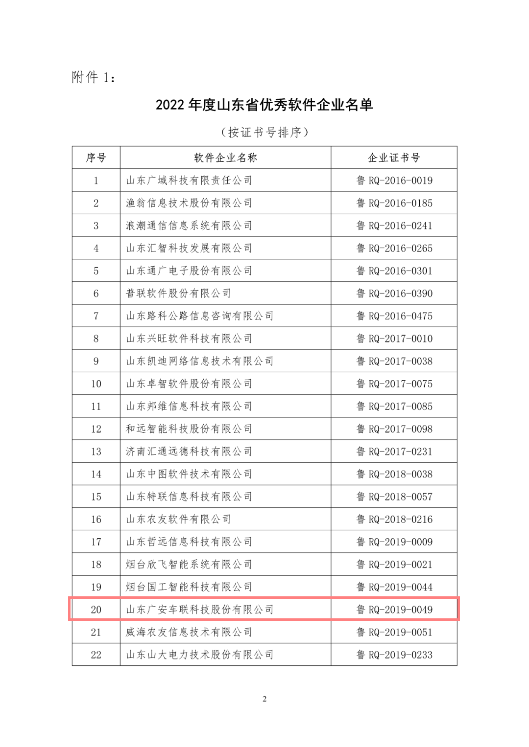 近日,山东省软件行业协会正式公布“2022年山东省优秀软件企业、优秀软件产品”通过名单,经企业申报、材料初审及专家评审等严苛筛选,由山东广安车联科技股份有限公司成功入选,荣获“2022年度山东省优秀软件企业”称号,公司自主研发的广安车辆管理系统V1.0成功入选,荣膺“2022年度山东省优秀软件产品”。